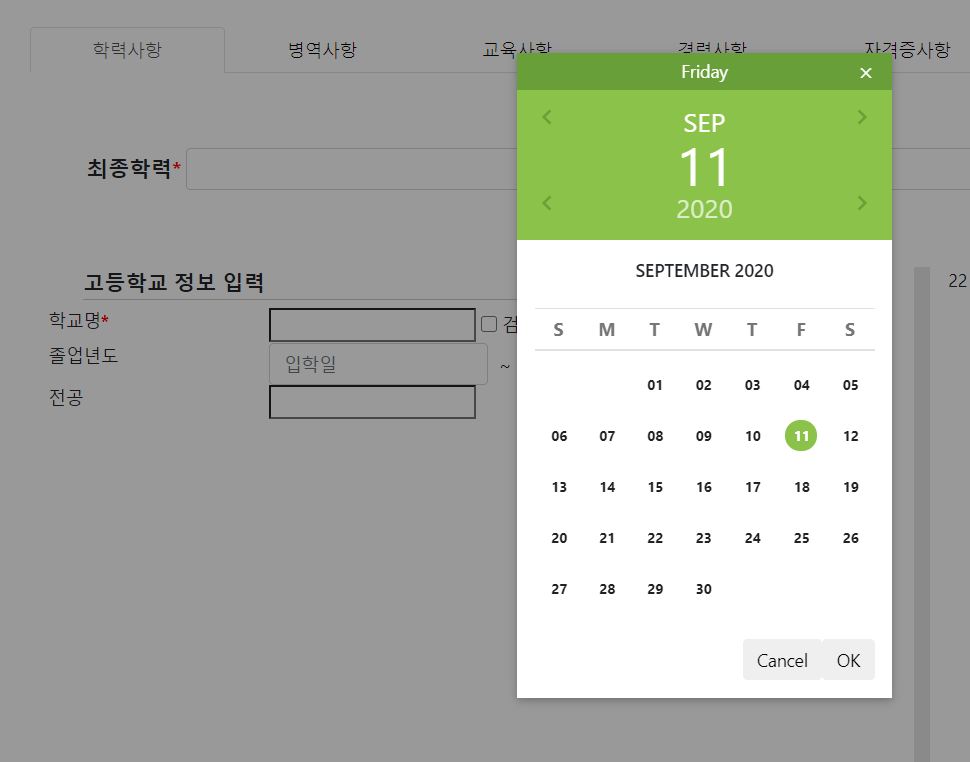 <input type="text" id="graduateDate" class="form-control graduate" placeholder="졸업일">