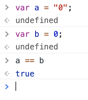 데이터 타입이 다르므로, 분명 a 와 b 를 비교하면 false 가 나올 것 같다.